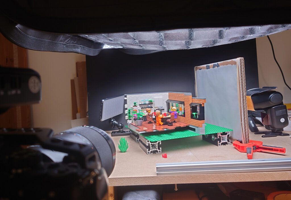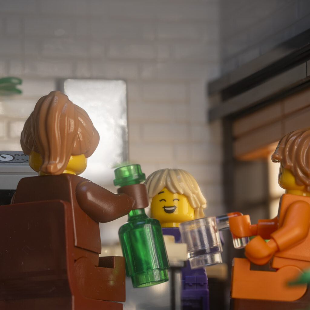 I used the Queer Eye – Fab 5 loft #10291 set and rebuild it a bit to function as an interior, this worked quite well and I believe I will save this setup for future shots. I wanted it to be early in the morning to experiment with the golden hour light setup.